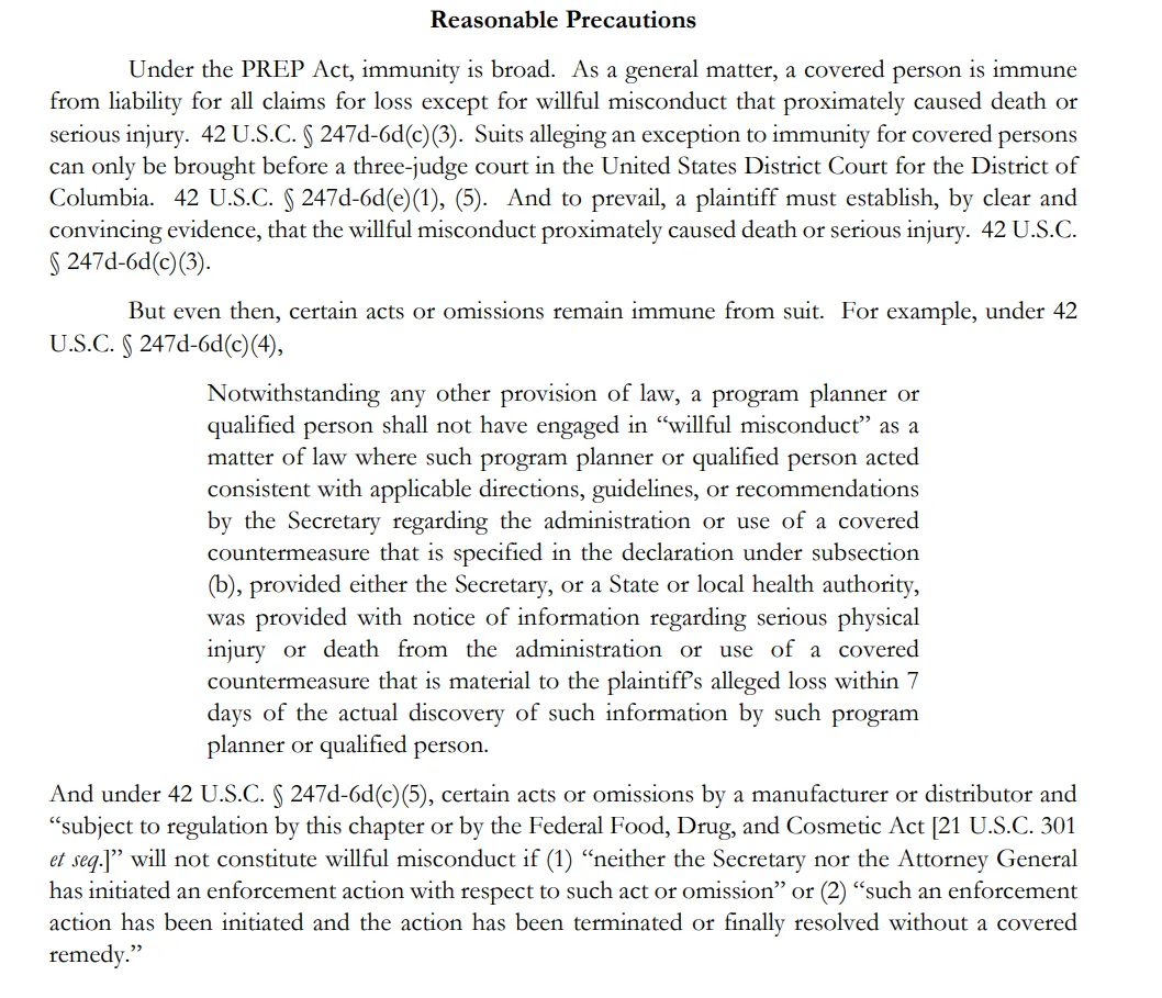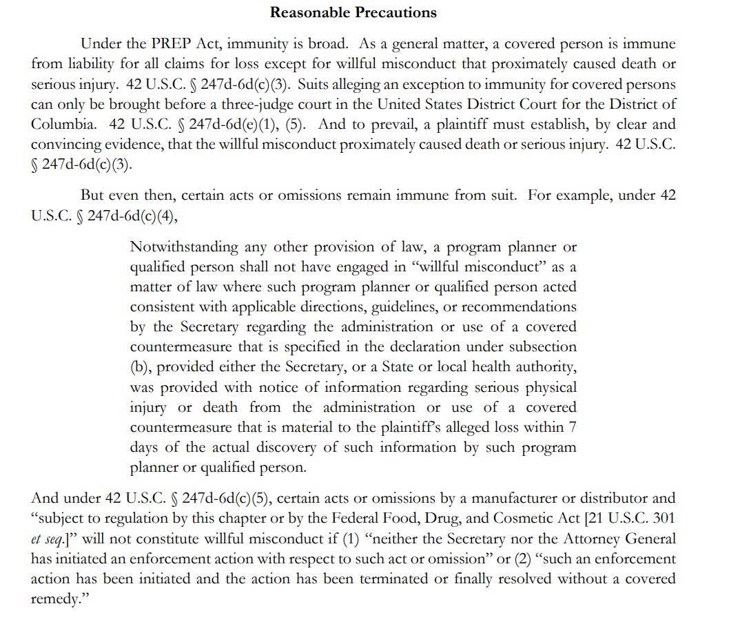 Same logic, financial scheme, illegal laws and pre-arranged liability waivers via PREP Act apply to every vaccine pusher out there. Here is HHS explaining to the foot soldiers of the pandemic preparedness cartel that they must precisely follow the orders so that no liability can ever will fall on them: