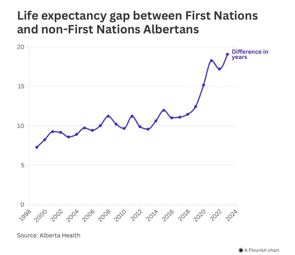 In Canada the ‘vaccine’ was given to indigenous people living on reserves months before non-indigenous people were. Their life expectancy dropped 8 years immediately after the roll-out. When physician Charles Hoffe, who worked in an isolated community saw the harm in the indigenous population following the administration of the Moderna jab, he wrote an open letter to Dr. Bonnie Henry, the Provincial Health Officer of British Columbia. He was ridiculed, ignored and persecuted.