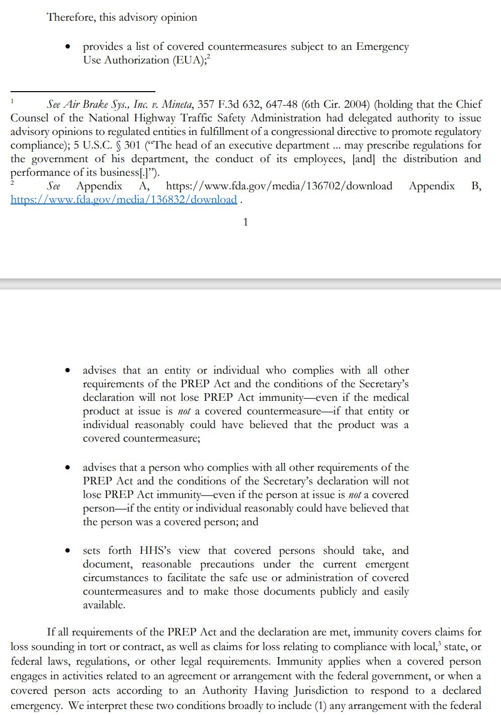 Under HHS-declared, real or faked “public health emergency”, killing someone with remdesivir, mRNA shot or any other “countermeasure” is a “covered activity”, as long as the killers (doctors, nurses, pharmacists, the military, etc. aka “covered persons”) report it to the US Government within 7 days of the kill. Here is one of the many Legal Opinion memos by HHS lawyers sent to all the “hellthcare” providers in 2020, which explains in great detail what they must do in order to get away with murder “maintain coverage”: