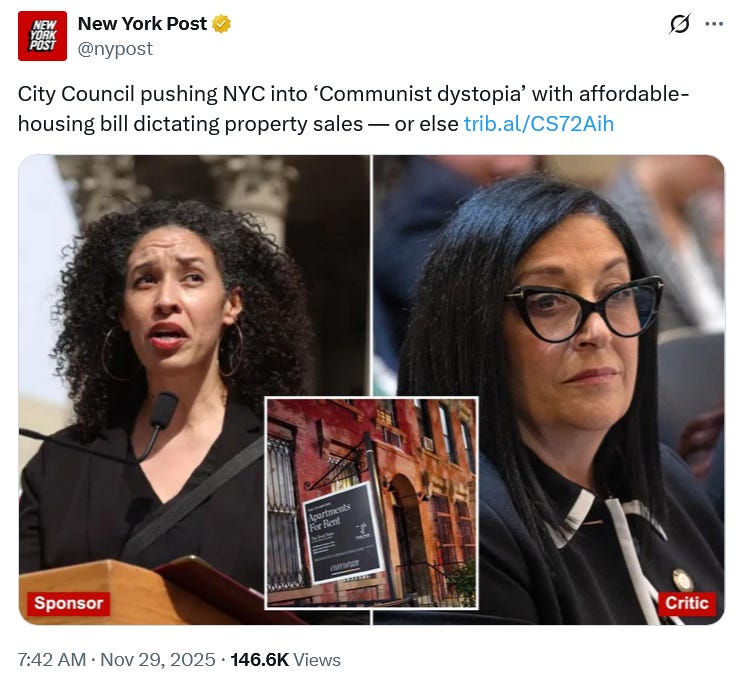 Of course, at this point, since Mayor Adams has not signed it into law, this is just a bill that has passed the City legislature. Raise your hand if you think that Mamdani will veto this bill next month when he takes the reigns from Adams?