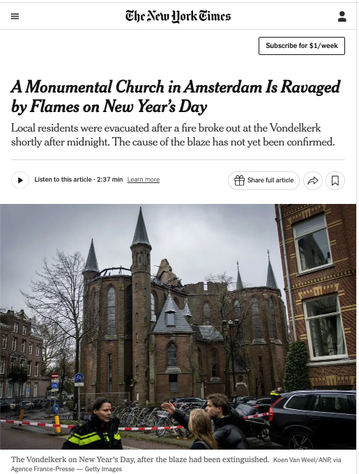 Did the same perps just burn down this “Monumental Church in Amsterdam” deliberately on New Years Day?