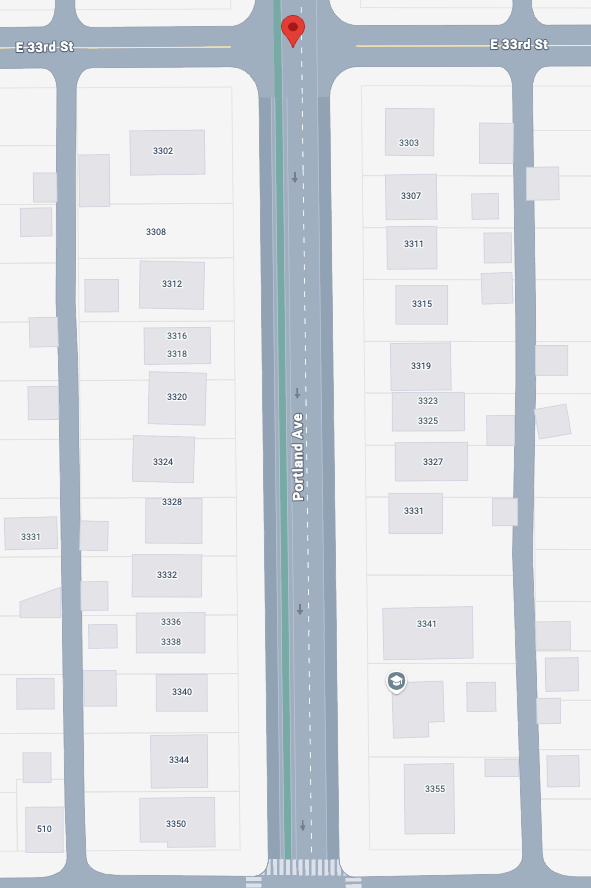 This screenshot verifies that the alleged shooting occurred right in front of the address: 3331 Portland Avenue in the 3300 block