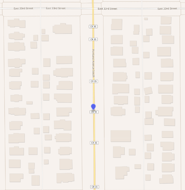 Below we can see that the two screenshots confirm that the alleged shooting (see blue dot) took place very near the intersection of East 33rd Street and Portland Avenue South.