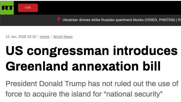 Trump claimed last week that the US must annex Greenland – an autonomous former Danish colony under Copenhagen’s sovereignty – to contain Russia and China, suggesting that the two countries will take over the island unless Washington does it first.