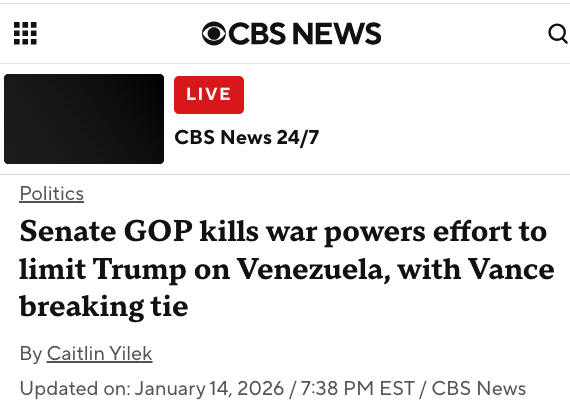 On Wednesday, January 14, Congress again failed to rein in a POTUS who, more than any other in U.S. history, demonstrates the dire need to be constrained by a War Powers Resolution.