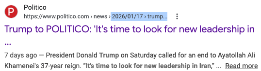 What follows are just a few of the videos and articles which have been posted since January 17th of 2026 since President Trump greatly amped up his “Nobel Peace Prize” ambition to carry out a regime change in Iran.