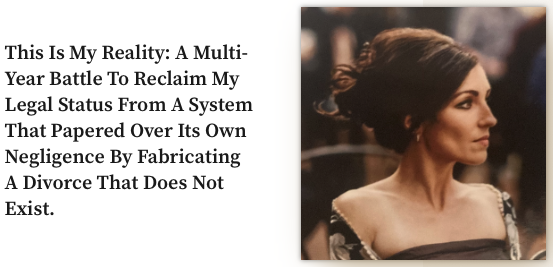 My case, however, amplifies this concern to an unprecedented level. Not only did the court lose the terms of our divorce, leaving us erroneously divorced under an outdated MSA, but Judge Keberlein then fabricated a “reconstructed” MSA based on false testimony, imposed a divorce without my consent, and is now attempting to compel my compliance under threat of penalty.