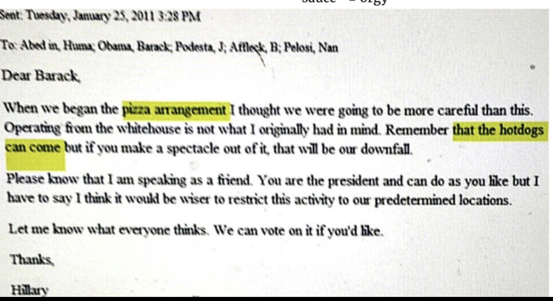 That’s weird. Why was Hillary Clinton concerned about something so benign as a pizza and hotdog party at Obama’s White House?