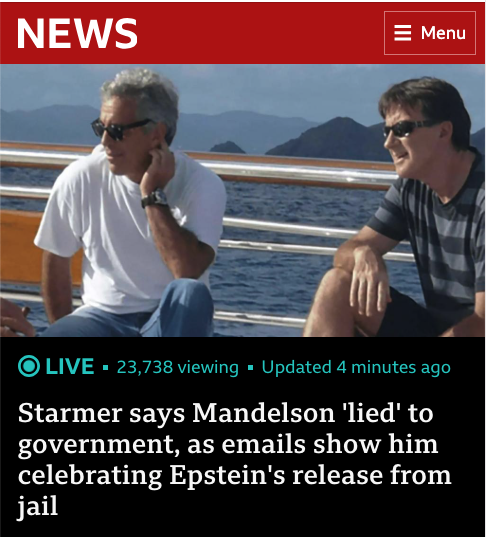- Deputy PM Lammy Turns on Starmer, Reveals He Warned the Prime Minister Against Appointing Mandelson as US Ambassador Over Epstein Ties – UPDATE: Morgan McSweeney, Chief of Staff for Starmer, Resigns