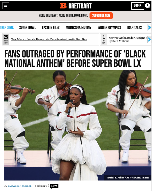 Breitbart News reported that fans also took to social media in 2025 for Super Bowl LX after the “Black National Anthem” was also performed, pointing out that “there is only one National Anthem.”