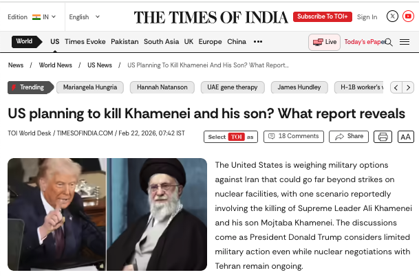 ____ https://timesofindia.indiatimes.com/world/us/us-planning-to-kill-khamenei-and-his-son-what-report-reveals/articleshow/128663115.cms