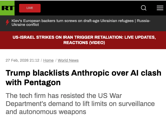 https://www.rt.com/news/633146-trump-anthropic-ai-pentagon/
