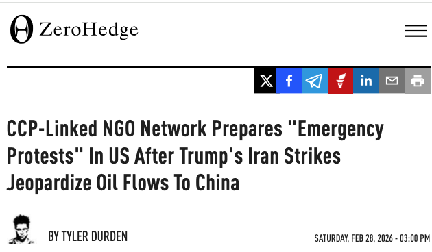 - READ THIS ABSURD HEADLINE Below as ZeroHedge Still Pushing Juvenile “CCP” Propaganda and Prevarication Like This About China And Iran