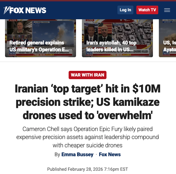 • It costs Iran $7,000 to produce one of these Shahed drones that have been ravaging US bases in the Persian Gulf…..