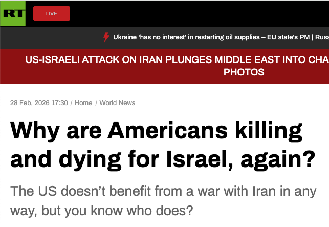 Why are Americans killing and dying for Israel, again? The US doesn’t benefit from a war with Iran in any way…..