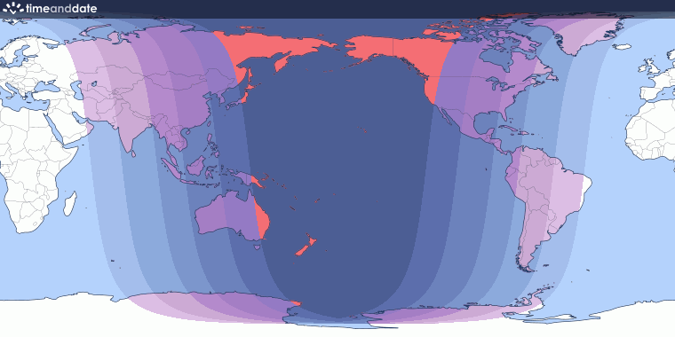 It’s no quirk of fate or mere coincidence that this unprecedented release of the most consequential essay on both historical revisionism and global prognostication has taken place today, March 3, 2026, the day of a Total Lunar Eclipse which was experienced most profoundly by these locations on planet Earth (see the USA’s Alaska in orange where it meets far eastern Russia in orange.