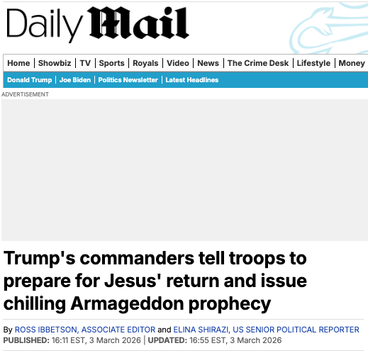 A non-commissioned officer (NCO) wrote to the MRFF Monday that his combat-unit commander had claimed Trump was ‘anointed by Jesus to light the signal fire in Iran to cause Armageddon and mark his return to Earth.’