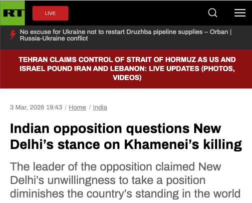 India’s main opposition party has questioned the government’s stance on the killing of Iranian Supreme Leader Ali Khamenei in attacks by the US and Israel.