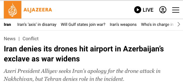 “The Islamic Republic of Iran has not targeted the Republic of Azerbaijan,” Gharibabadi said in comments carried by Iran’s Tasnim news agency. “We do not target our neighbouring countries.”