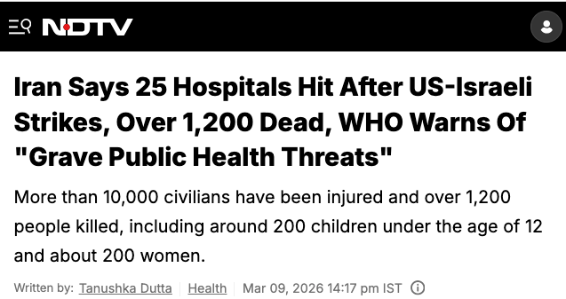 25 Hospitals Hit After US-Israeli Strikes, Over 1,200 Dead & Over 10,000 Injured