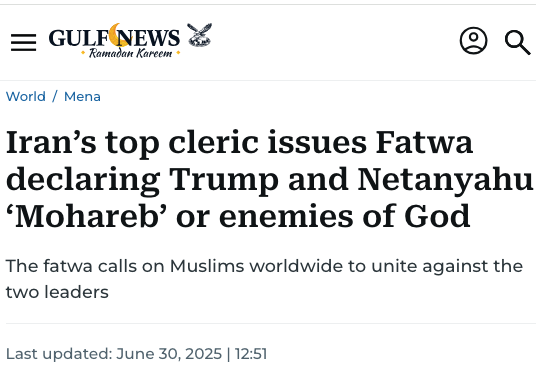 If Netanyahu is dead, surely Trump is aware of Iran’s 2 fatwas issued against him with the 9 months
