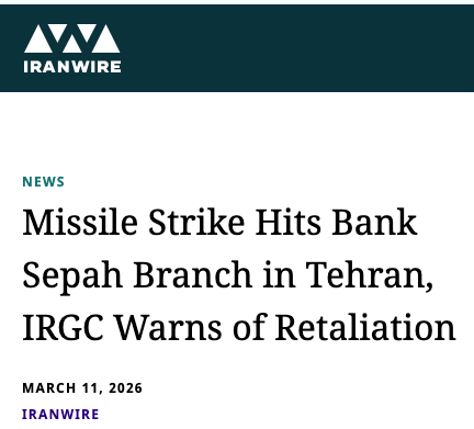 According to the spokesperson for Iran’s Khatam al-Anbiya military headquarters, a bank in Tehran was struck by a missile attack in the early hours of Wednesday, March 11.