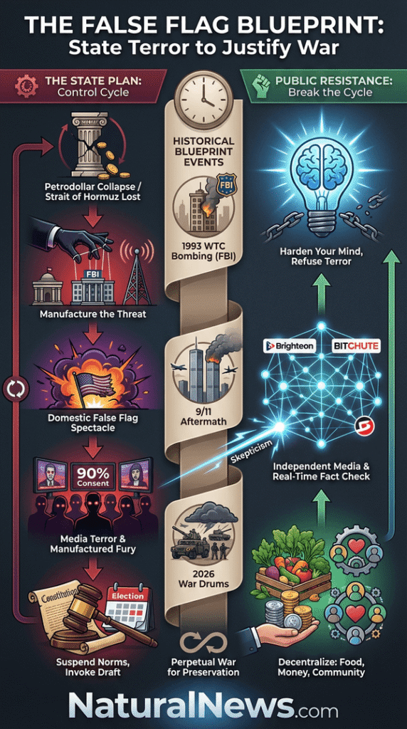 There is, however, a critical flaw in their plan. Unlike 2001, we now live in a decentralized media ecosystem. The official narrative of a terror attack will be challenged in real-time on platforms like Brighteon.social, Bitchute, and through independent analysts. The deep, well-earned distrust in institutions — the FBI, the corporate media, the Pentagon — is their greatest vulnerability. A significant portion of the public now knows that, as one article summarized, ‘governments all over the world have relied on false flags — the oldest political trick in the book — to justify their actions and control populations’ [9].