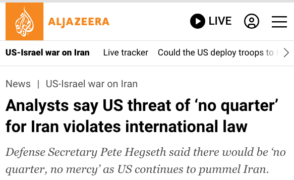 Rights groups have slammed United States Secretary of Defense Pete Hegseth for saying that “no quarter” will be shown to Iran, as the US and Israel continue their military campaign against the country.