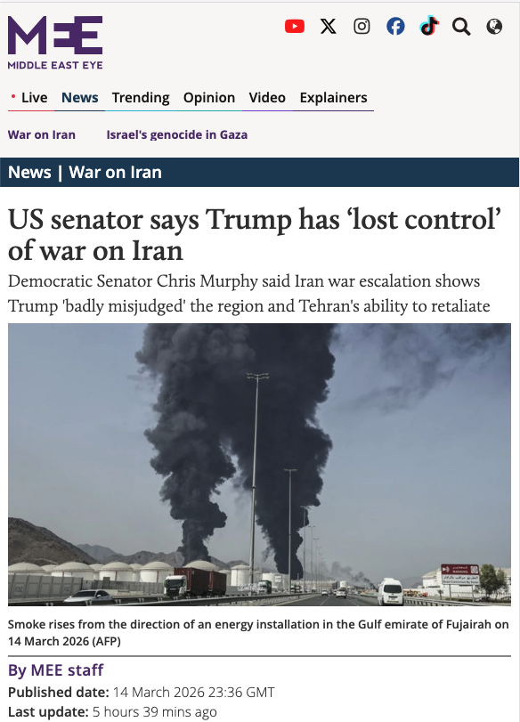 https://www.middleeasteye.net/news/us-senator-warns-trump-has-lost-control-war-iran