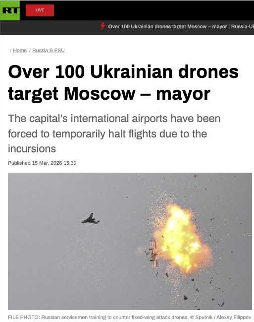 Over 100 Ukrainian drones target Moscow – Mayor [Whose side is President Putin really on? How does the Kremlin allow this now regular breach of vital Russian territory?]