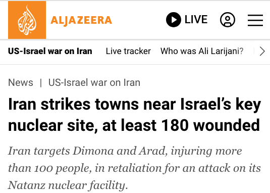 The Israeli Ministry of Health says at least 180 people have been wounded in Iranian missile attacks on the southern city of Dimona – home to the country’s main nuclear facility – and nearby Arad, in one of the most dramatic escalations since the US-Israel war on Iran began.