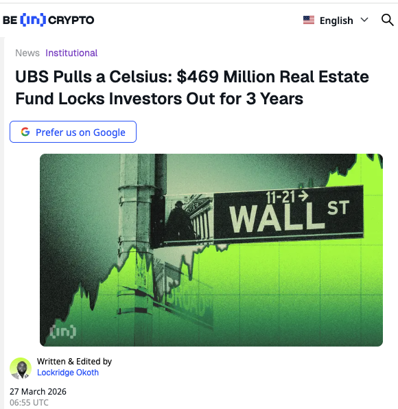 HOLY MOLY!!! UBS Locks $469 Million Of Real Estate Investment Funds—No Withdrawals For Up To 3 Years