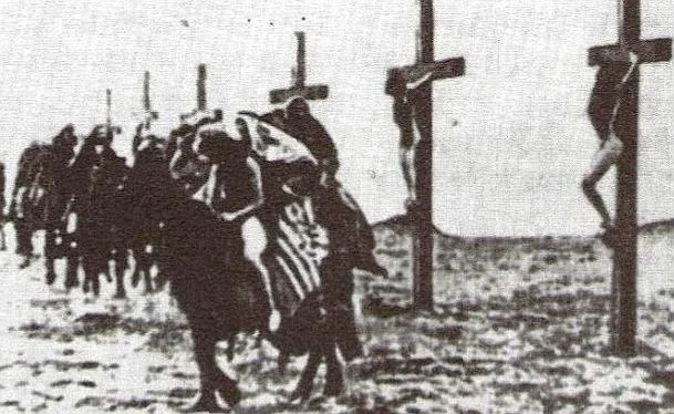 During the Armenian Genocide 16 girls were crucified alive in Malatia, Turkey with spikes through their feet and hands.
