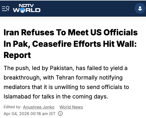 The push, led by Pakistan, has failed to yield a breakthrough, with Tehran formally notifying mediators that it is unwilling to send officials to Islamabad for talks in the coming days.