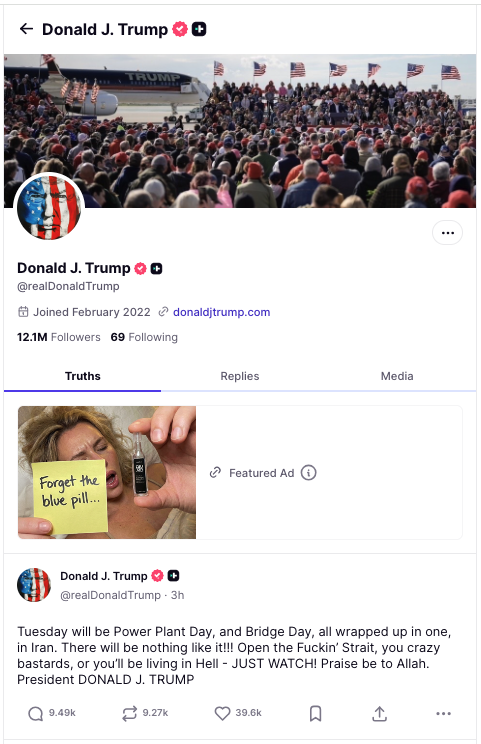 THE WAR CRIMINAL POTUS REALLY BELIEVES HE DESTROYS WITH IMPUNITY! WATCH: Trump Posts Video of Iran’s Biggest Bridge Being Destroyed After Threatening to Send Iran “Back to the Stone Ages” – “Much more to follow! IT IS TIME FOR IRAN TO MAKE A DEAL BEFORE IT IS TOO LATE”