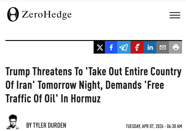A POTUS and Commander-in-Chief of the U.S. Armed Forces cannot makes threats like this: ‘Take Out Entire Country Of Iran’. It’s a serious war crime to even issue such terrorist threats of total devastation and mass murder.
