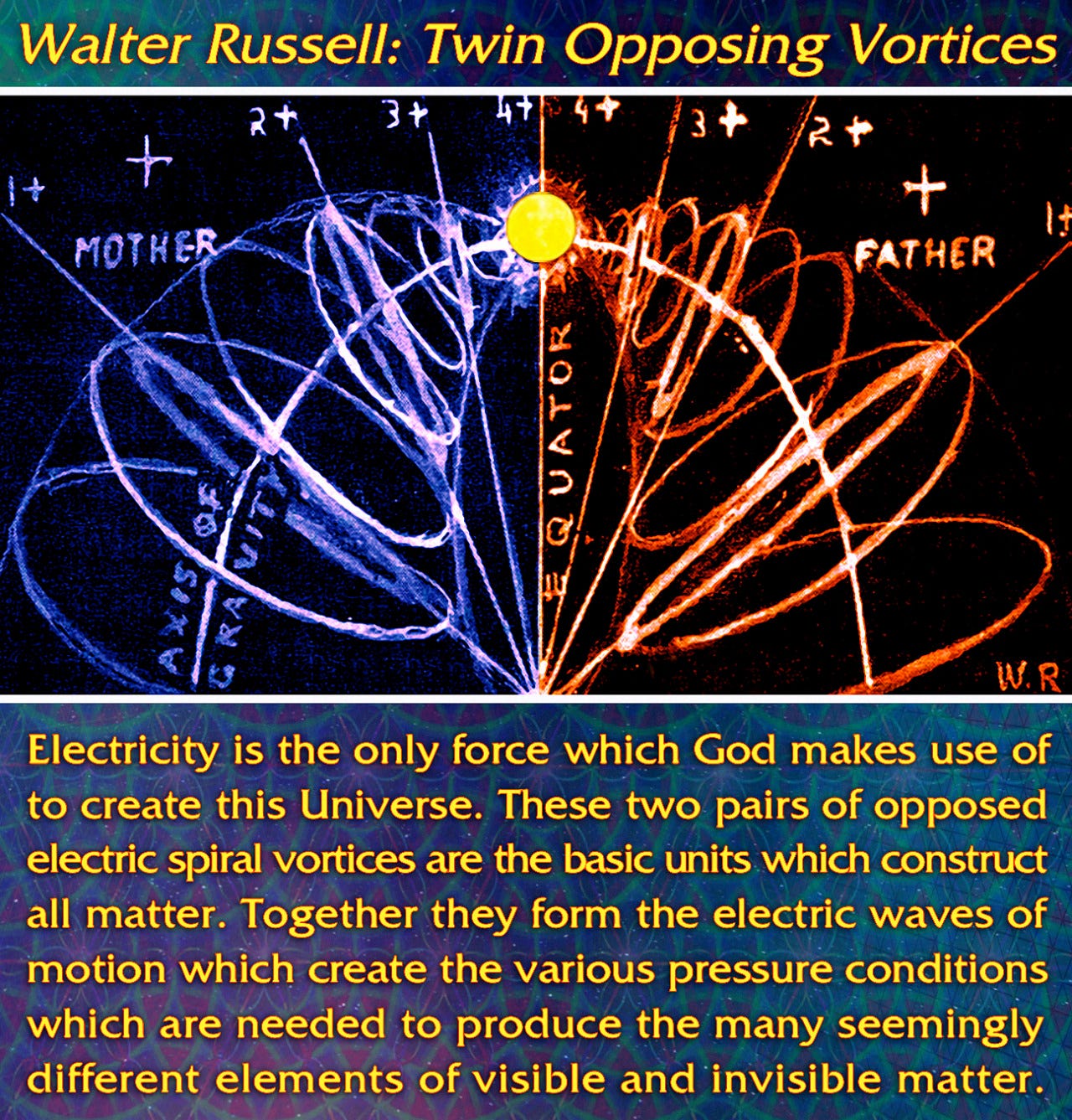 There is a much simpler and more precise way to state what this co-relation is and many individuals in an array of fields have already figured this out and did not need to concoct a supposedly “new science” in order to understand it. Since all matter is made of opposing vortices, and each element has it’s mate—one of more female characteristics and one of male—these are in constant flux. Creation is a state of perpetual motion.