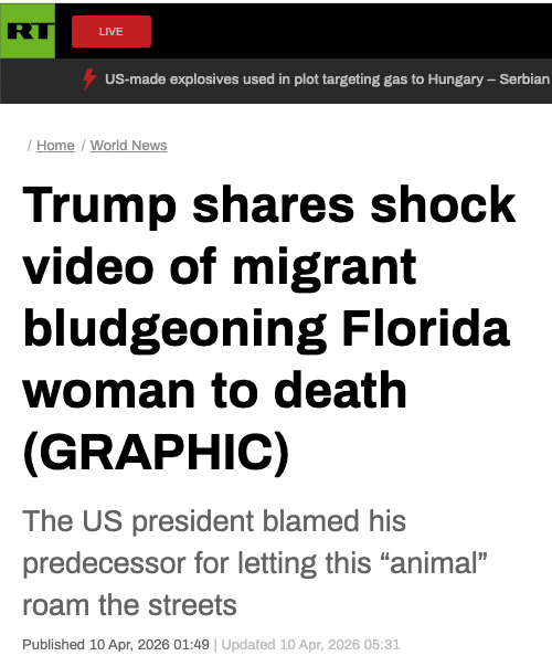 DESPERATE POTUS NOW POSTING SUPER-SENSATIONAL DISTRACTION CONTENT AFTER IRAN WAR DISASTER: Trump shares shock video of migrant bludgeoning Florida woman to death (GRAPHIC)
