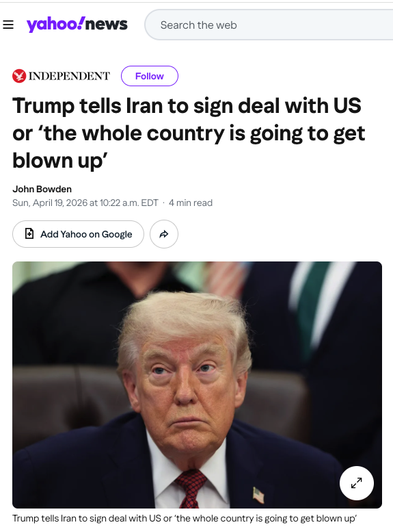 “If they don’t sign this deal, the whole country is going to get blown up,” Trump told Fox News Chief Foreign Correspondent Trey Yingst.
