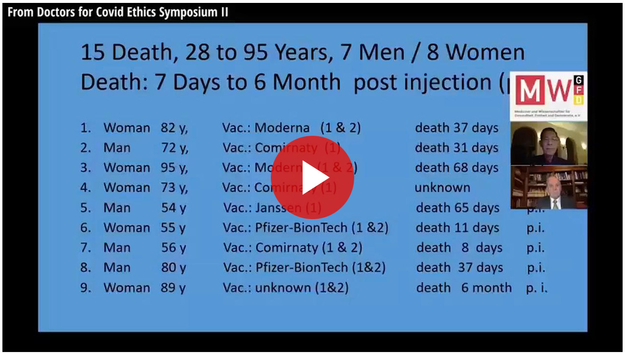 At a very early stage, the deadly impacts of the mRNA vaccine were known and documented. The deaths were occurring within one to three months following injections. See video below.