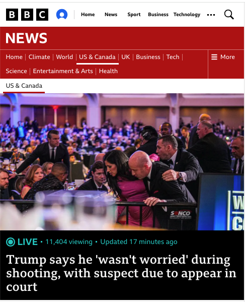 Donald Trump says he “wasn’t worried” during the shooting on Saturday night at the White House Correspondents’ Dinner in Washington DC