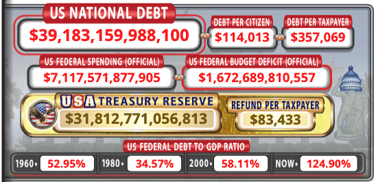 That’s right, the National Debt is rapidly approaching $40 Trillion, which is actually much higher than the US DEBT CLOCK above indicates, and Trump only rashly adds to the debt load and never takes conservative measures to reduce it.