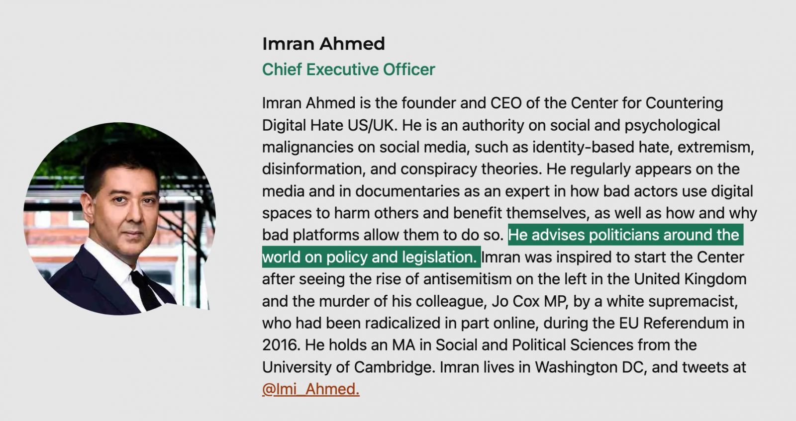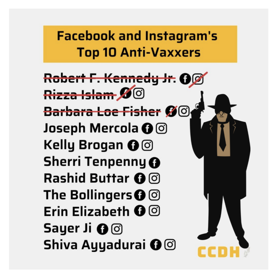 Also noteworthy is that on a March, 29th, 2021, podcast named Doomed with Matt Binder, titled “The Anti-Vaxxer Disinformation Dozen (w/ Imran Ahmed),” Imran states that RFK Jr. is “…killing black people with the misinformation he spreads.” He referred to Sayer Ji as “selling death.” And he accused the twelve US citizens his organization targets of spreading disinformation “…because they have a psychopathological need… to cause pain and to cause chaos.”