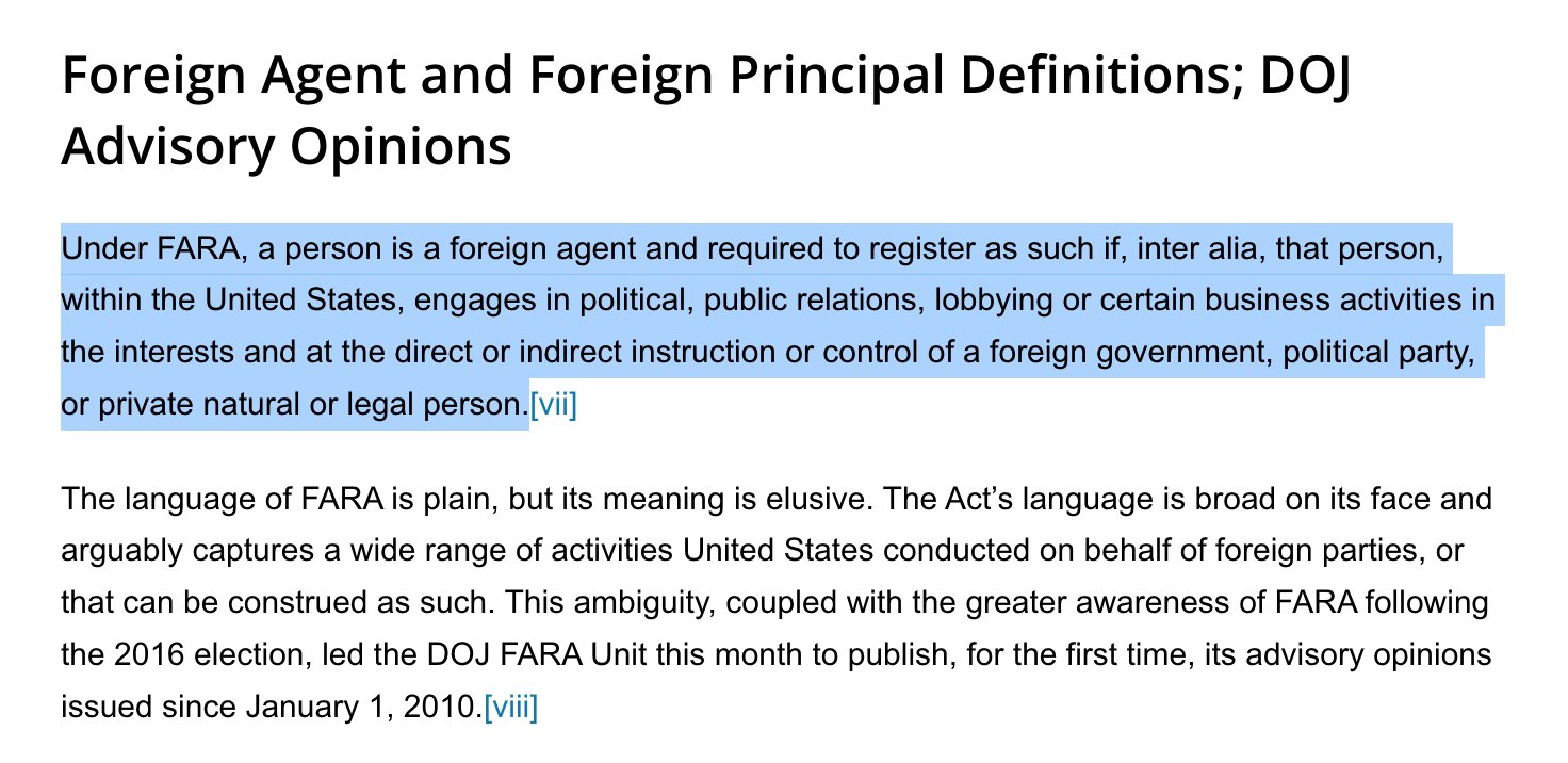 “Foreign Agents Registration Act,” U.S. Department of Justice, https://www.justice.gov/nsd-fara.