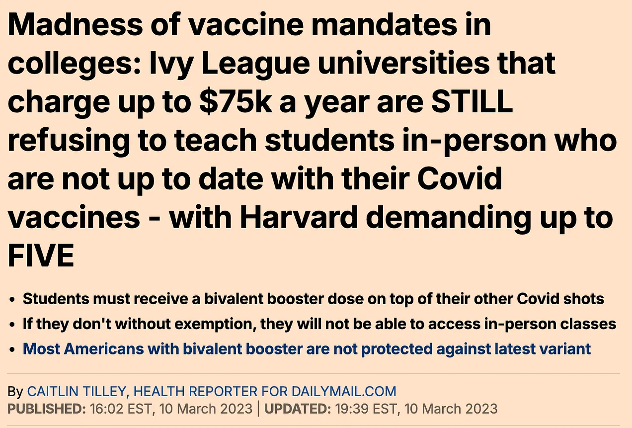 This disregard for informed consent is glaringly evident in Harvard University’s recent decision to mandate five COVID-19 boosters as a condition for in-person education. The policy exemplifies the institutionalization of coercion under the guise of public health protection